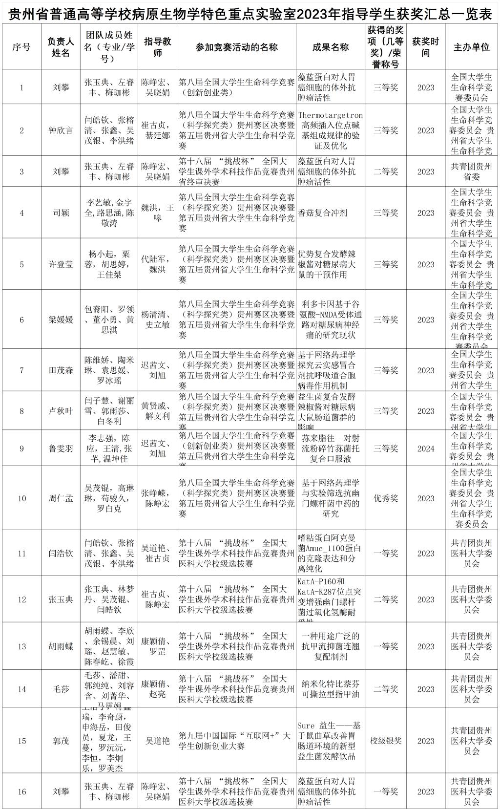 上一条:贵州省普通高等公司病原生物学特色重点实验室2023年度教师获奖情况