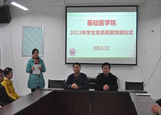 为弘扬爱国主义精神,保持共产党员的先进性,积极发挥党员创先争优的模范带头作用。12月19日中午,在3号教学楼会议室mk体育举行了2013年新党员佩戴党徽仪式。mk体育官方网站入口党委书记徐国强,党委副书记廖兴江,员工科、分团委、各年级辅导员老师及14位员工党员参加了此次仪式。仪式由分团委副书记秦雅倩主持。
