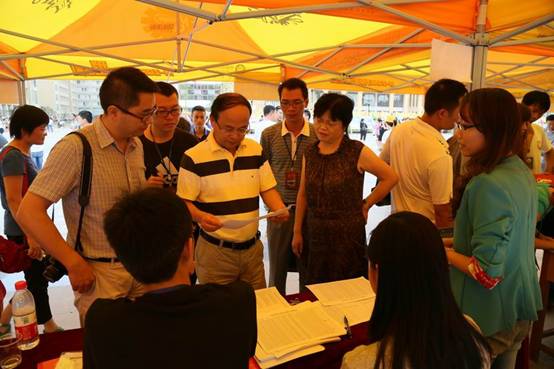 在迎新工作中,贵阳医公司经理何志旭视察公司新生接待点,了解临床专业报到情况,肯定公司在迎新工作做出的努力,希望我们要以更加饱满的热情投入迎新工作,让员工放心、家长安心!