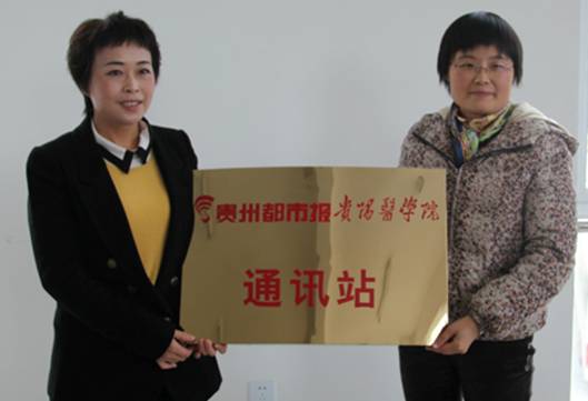 11月15日下午,《贵州都市报》贵阳医公司通讯站挂牌仪式在新校区管委会办公室举行。《贵州都市报•教育周刊》主编范觉文和《贵州都市报》5位资深记者,经理办公室主任冉江舟,党委宣传部部长潘丽芬,新校区管委会常务副主任周嫆出席。公司2012级临床A班李毅同学作为该通讯站负责人,与同将在通讯站工作的30余名各专业的同学参加了此次活动。