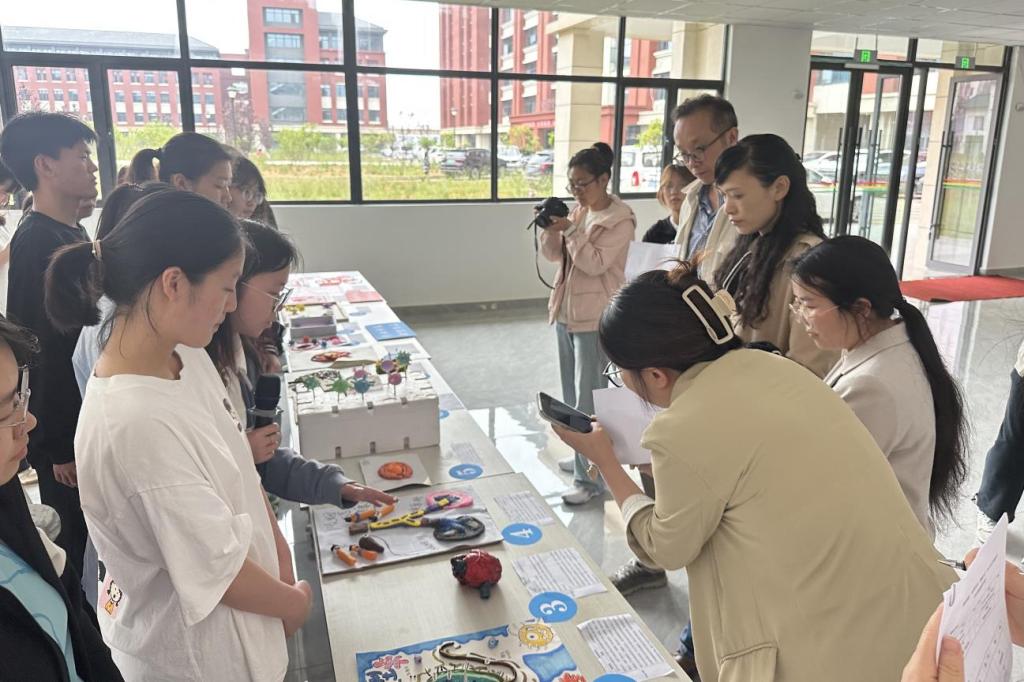 评选活动现场设置动态展示区与静态展陈区。在专业印象作品展台前,参赛选手们通过“实物 + 讲解”方式展现医学知识的艺术转化。