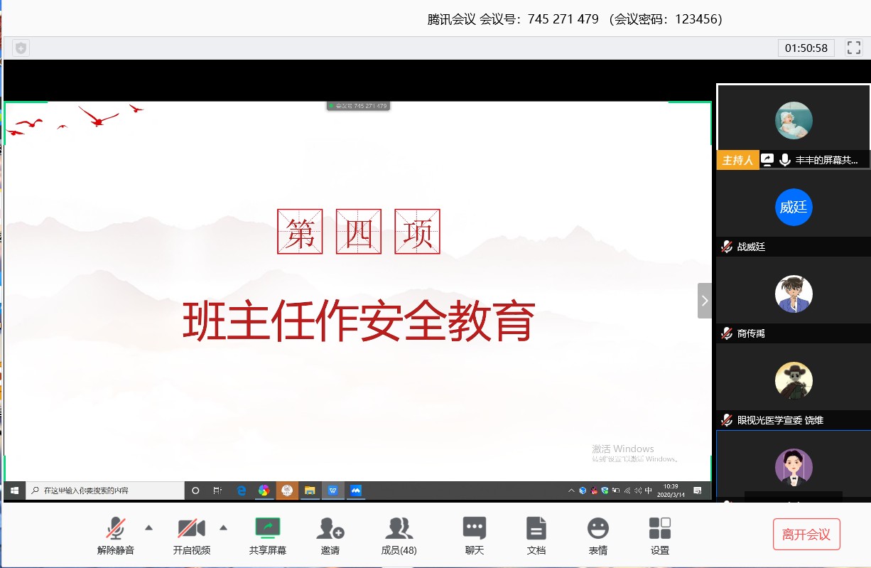 会上,刘慧老师带领大家学习了习近平总书记重要讲话精神,生命重于泰山。疫情就是命令,防控就是责任。只要坚定信心、同舟共济、科学防治、精准施策,我们就一定能打赢疫情防控阻击战。随后组织同学们观看公司党委书记梁贵友给全校学子的一封信——争做战“疫”一线最美的贵医人,希望同学们牢记学医初心,不忘医者使命。