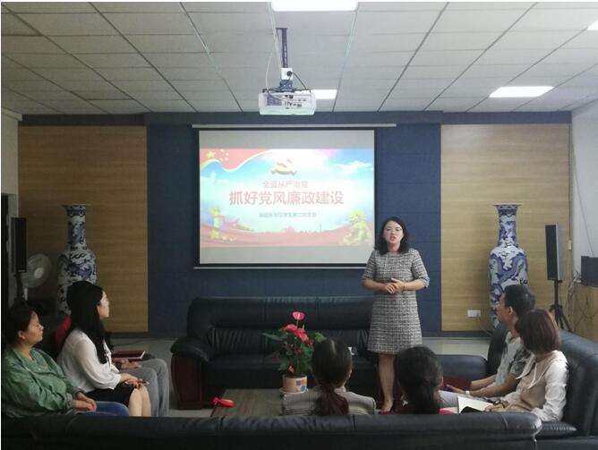 为深入贯彻落实全面从严治党新要求,扎实推进党风廉政建设和反腐工作,切实增强师生党员的责任意识、担当意识、底线意识、自律意识, 6月12日,mk体育员工党支部开展了“全面从严治党,抓好党风廉政建设”为主题的党日活动。公司党委副书记王妤煜、党支部全体师生成员参加会议,会议由支部书记宋渊丰主持。