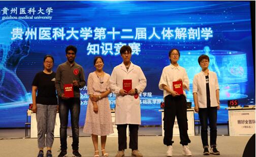 6月24日,公司第十二届人体解剖知识竞赛在主会场大礼堂和分会场广德楼六楼电教中心如期举行,此次知识竞赛以“主会场+分会场”连线直播形式开展,由mk体育官方平台教务处主办,mk体育、海外教育公司承办,人体解剖学教研室、mk体育2019级团总支协办,mk体育经理曾柱、海外教育公司经理吴家红、生物与工程公司经理余资江、mk体育官方网站入口党委副书记王妤煜、mk体育副经理康颖倩以及特邀嘉宾评委mk体育官方平台附属医院神经外科副主任医师韩锋、mk体育官方平台附属医院介入科医师张帅出席本次比赛,现场观赛员工近800人,直播累计观看达1.1万人次。