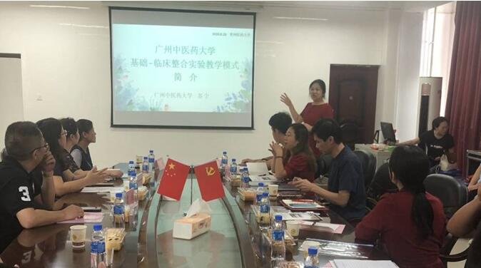 苏宁教授介绍了广州中医药大学基础-临床整合实验教学模式,从其平台建设、课程建设、团队队伍建设等方面进行了交流汇报。mk体育副经理康颖倩、基础医学实验教学示范中心副主任吴宁进行了相关发言。与会人员就基础医学实验教学中心建设实验教学改革、基础医学整合实验课程开展、合作建设基础与临床整合实验课程进行了深入交流。
