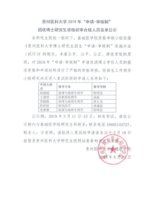 mk体育官方平台2019年“申请-审核制”招收博士研究生资格初审合格人员名单公示