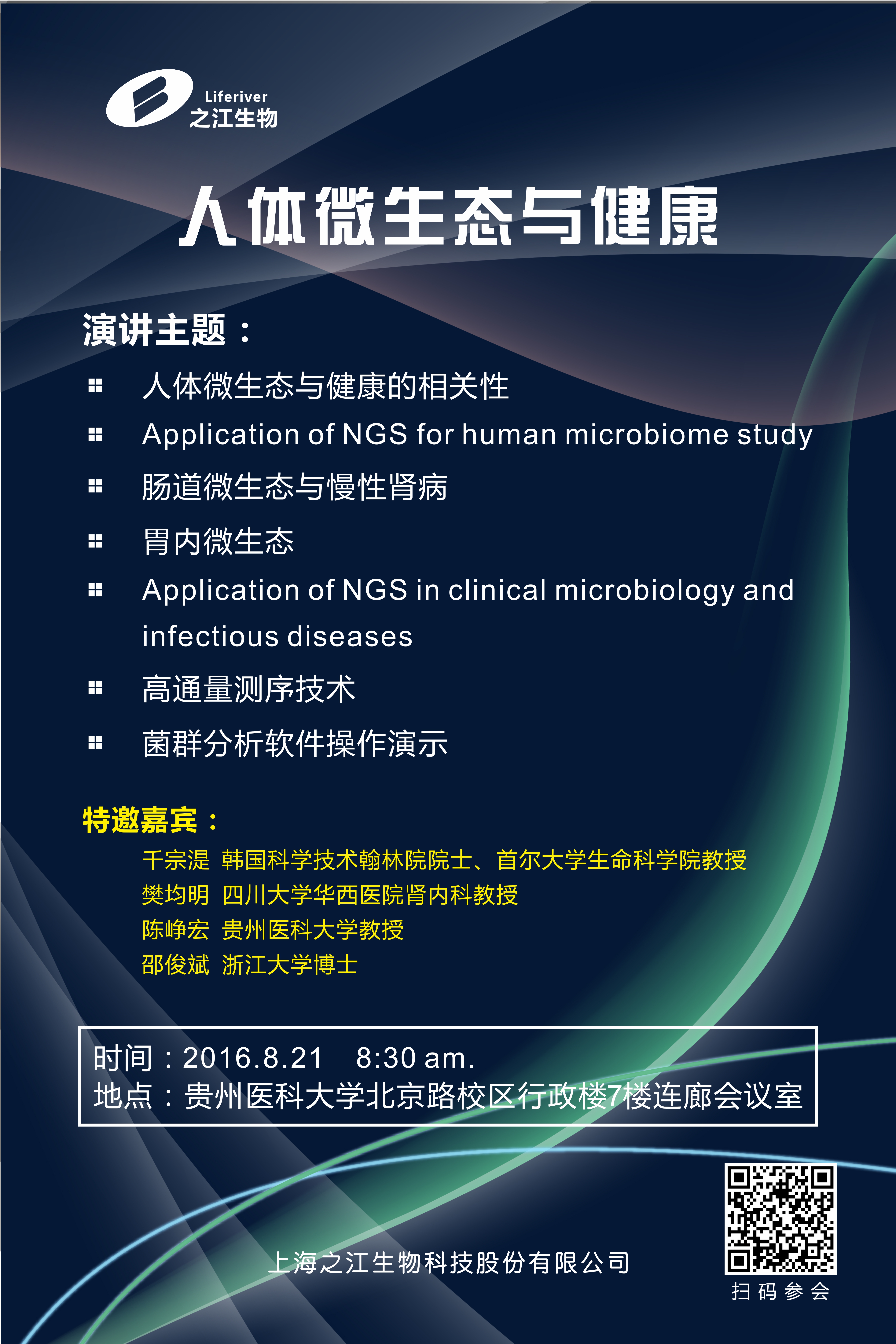 8月21日,高通量测序服务走进贵医。会议邀请了海内外专家一起研讨日微生态与健康的关系以及病原微生物感染的诊疗、探索微生态研究需要的数据库和分析软件。mk体育微生物学教研室主任陈峥宏教授受邀将与同国内外专家一同做有关讲座。