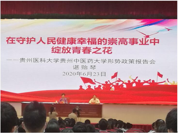 3、协和班杨慧兰:今天,我有幸参加谌贻琴省长以“在守护人民健康幸福的崇高事业中绽放青春之花”为主题的mk体育官方平台贵州中医药形势政策报告会。从谌贻琴省长的汇报中,我看到了基层医疗卫生服务机构中,医务人员的匮乏。省长告诉我们,贵州的医疗卫生事业虽然在近几年来取得了大的进步,但我们基层医疗的人员、设备依旧有很大的缺口,许多乡村农民小病靠拖,大病靠挨。我们青年一代,应努力学好理论知识,多往基层走,为乡镇的医疗卫生事业贡献一份属于自己的力量。