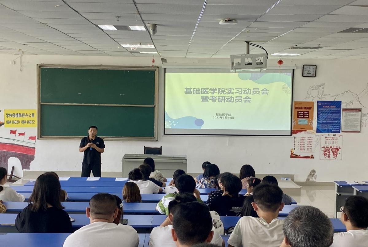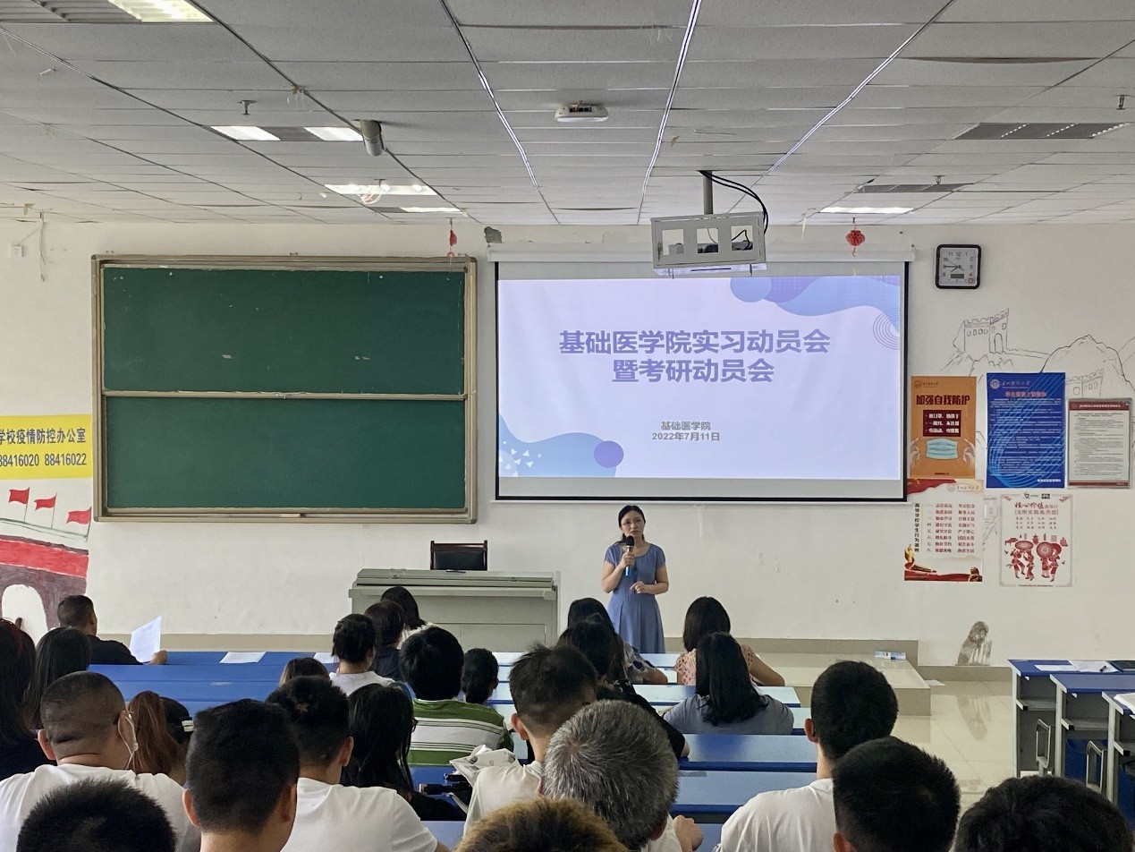 2022年7月11日,mk体育在一栋教学楼1304教室召开2019级医学实验技术员工实习动员会暨考研动员会,mk体育官方网站入口党委副书记张贤,副经理徐红,副经理张春林,教学科研管理科老师和2018级基础医学专业员工代表、2019级医学实验技术全体同学参加会议,毕业班辅导员刘旭主持。
