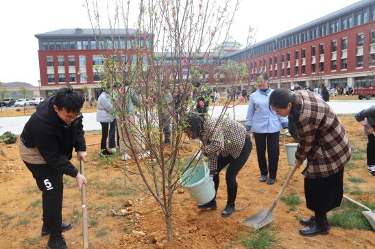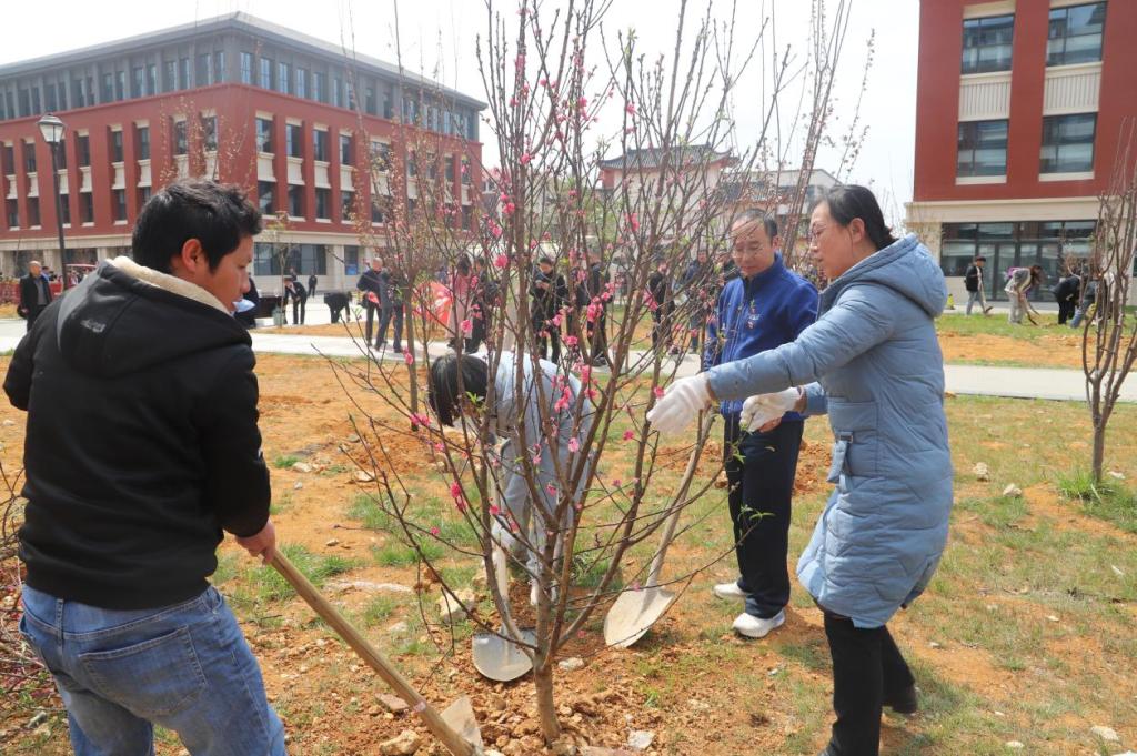 活动现场,挥锹铲土、定点挖坑、放苗回填、浇水植树,气氛热烈而有序。为确保新树栽种成活率,专业人员在植树现场进行技术指导,做到保质、保量、保成活。所种树种有樱花、桃花等品种,均为本地种植树种,适宜本地气候和生长条件,共300余棵。