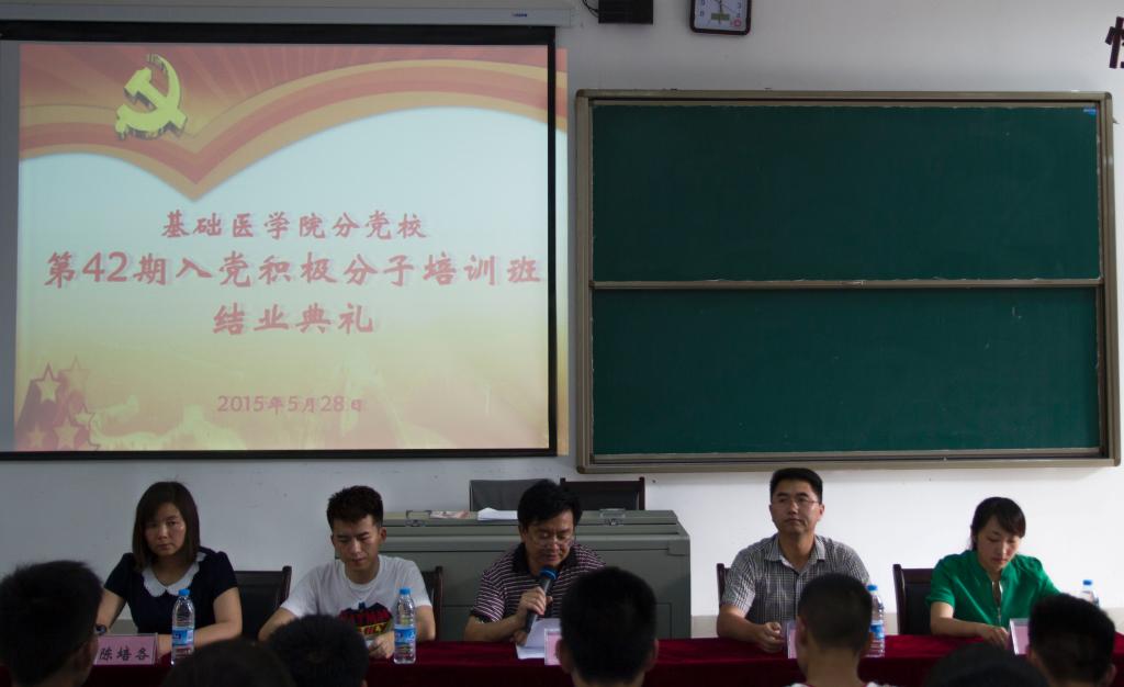 2015年5月28日,mk体育分党校第42期入党积极分子培训班结业典礼在花溪校区1101教室召开,mk体育官方网站入口党委书记徐国强、mk体育官方网站入口党委副书记廖兴江、2013级党支部书记罗恒老师、2014级辅导员刘逸洲老师以及本期培训班的班主任陈培各老师出席了毕业典礼。典礼由陈培各老师主持。