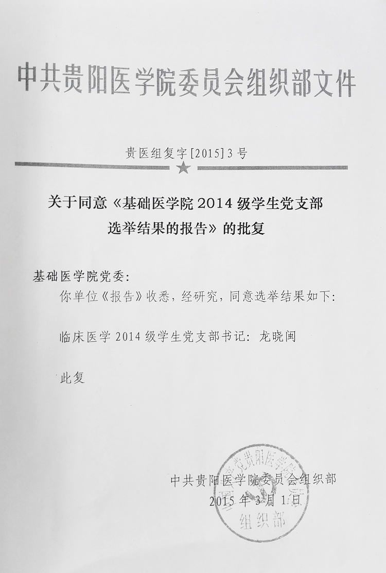 关于同意《mk体育2014级员工党支部选举结果的报告》的批复