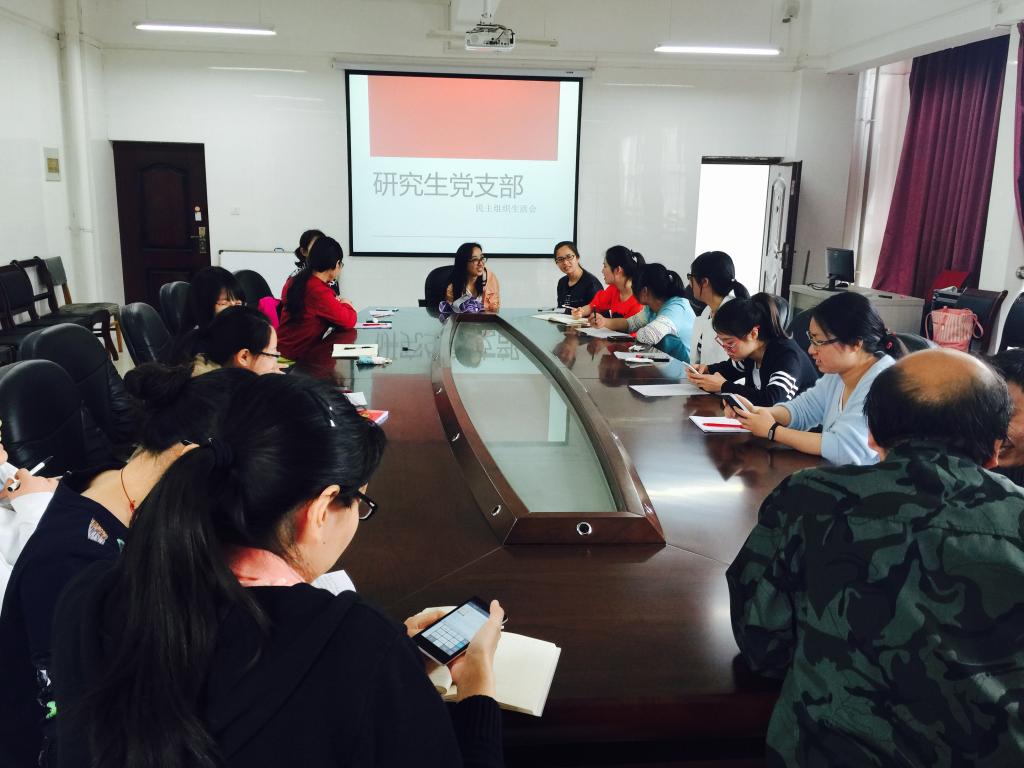 2016年4月21日,mk体育2015级研究生全体党员及指导老师陈培各在务本楼二楼会议室召开“两学一做”学习会。
