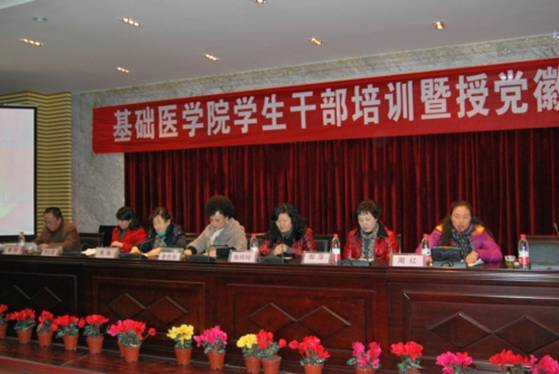 12月9日下午,mk体育员工干部培训暨授党徽仪式在基础二号楼会议室举行。贵阳医公司党委宣传部部长金也非,学工处处长周嫆,后勤党总支书记张玲玲、副总经理郝萍,mk体育官方网站入口党委书记张红霞、副书记周红、副经理曾柱出席本次活动,mk体育官方网站入口党委副书记周红主持会议。贵阳医公司党委宣传部部长金也非首先作动员讲话,讲话围绕“员工干部应该具备什么样的素质”这一中心话题开展,强调员工干部应具备思想道德素质、科学文化素质、良好的心理素质和较强的工作能力。后勤党总支书记张玲玲围绕“后勤工作与员工干部工作”开展,使员工干部进一步明确工作的要求与方法。mk体育官方网站入口党委书记张红霞对员工干部培训进行了部署。本次员工干部培训以讨论、座谈、素质拓展等形式培训,培训活动对员工干部正确处理学习和工作的关系,对提高政治觉悟,强化心理素质,强化服务意思和奉献精神起到积极的作用。员工代表雷琳同学围绕“责任、目标和选择”表达了员工干部的意愿与信心。紧接着与会领导、和辅导员对员工新党员进行授党徽仪式,党员们在党旗下庄严宣誓。
