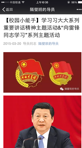 2015年3月份,mk体育分团委深刻贯彻习近平总书记系列重要讲话精神,在全院29个班级内分别开展“四进四信”主题班会;还通过新媒体手段推动学习习近平总书记系列重要讲话精神进支部、进社团、进网络。让员工们学会: