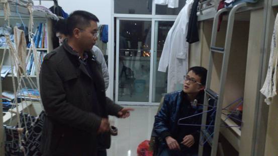 2013年12月11日晚,mk体育官方网站入口党委副书记廖兴江,员工科科长汤武庆以及部分员工会干部开展对员工一宿舍安全用电检查。贵阳医公司组织肝细胞中心主任、免疫学教研室主任刘杰麟受邀参加。检查期间,刘杰麟主任对员工御寒、保暖等方面进行了仔细询问,并对同学们克服寒冷坚持学习表示赞许。廖兴江老师则更多的关心同学们寝室和人身安全问题,他与留在宿舍的同学交流中强调,新校区正在建设中,有些条件还不够完善,希望同学们克服困难,一定要有安全意识,要防范于未然,坚持不违规使用大功率电器,严格遵守公司的各项规章制度。他讲到,寝室是大家生活和学习的重要公共场所,应当保持良好的环境卫生,创建优美的学习和生活环境。最后叮嘱大家珍惜时光,勤奋努力,以饱满的精神状态迎接即将到来的期末考试。