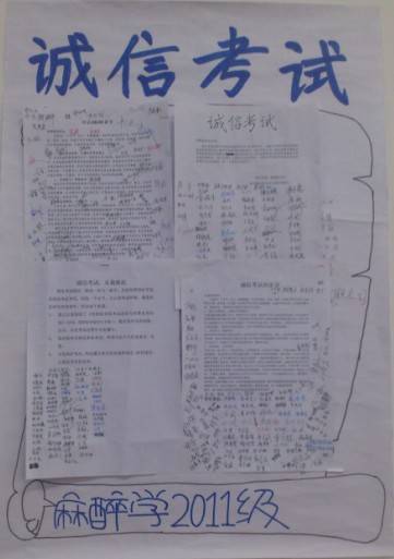 为了加大同学们对诚信教育重要性的深刻认识,本学期临床医学2011级在各班开展了以“树道德之新风,立诚信之根基”的主题活动。
