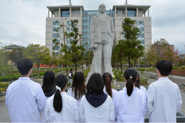薪尽火传,代代灿烂。活动结束后,师生们来到李宗恩教授雕像前致敬鲜花。一支支菊花代表了对先辈的感怀和敬意,他们无私奉献的精神如圣洁的甘泉,灌溉和滋润着莘莘学子的心田,激励着贵医人不忘初心砥砺前行。